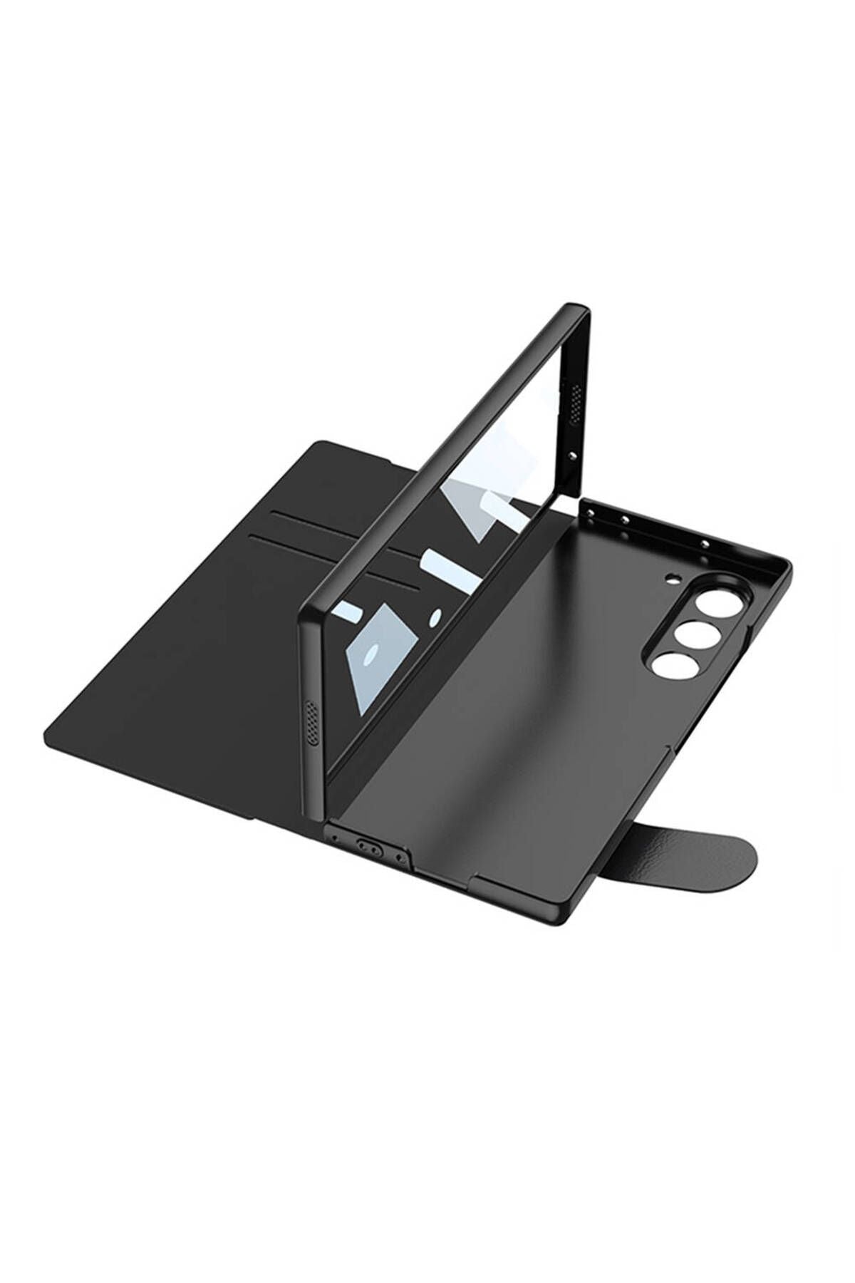Galaxy Z Fold 6 Kılıf Kamera Korumalı Kartlıklı Kalem Bölmeli Zore Kıpta Çizgili Droga Kılıf-Siyah